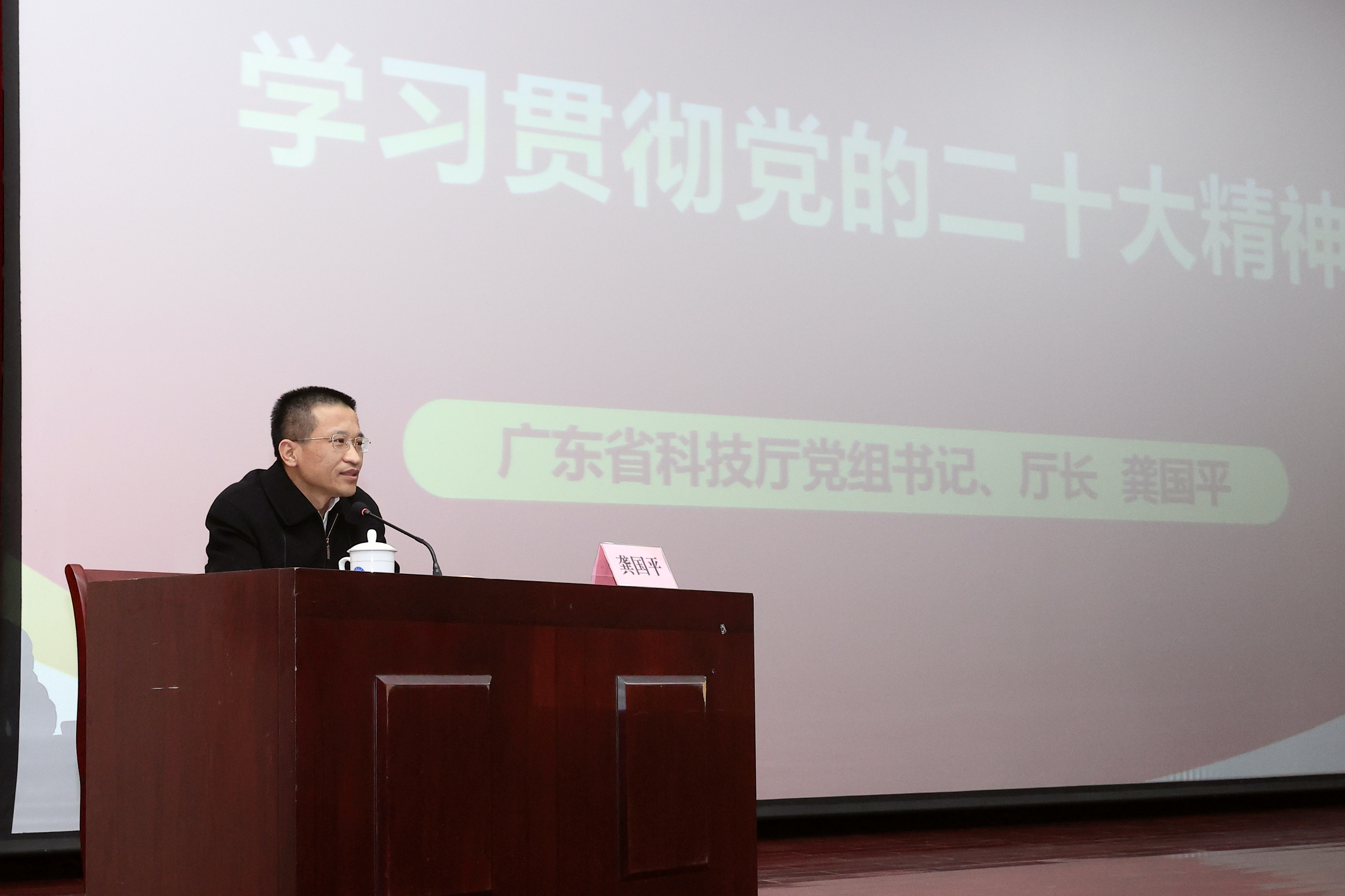 報告會上,龔國平以“學(xué)習(xí)貫徹黨的二十大精神”為主題,從黨的二十大主題和主要成果、過去5年的工作和新時代10年的偉大變革、馬克思主義中國化時代化、中國式現(xiàn)代化、全面建設(shè)社會主義現(xiàn)代化國家的目標(biāo)任務(wù)、堅持黨的全面領(lǐng)導(dǎo)和全面從嚴(yán)治黨、應(yīng)對風(fēng)險挑戰(zhàn)等方面,結(jié)合廣東科技創(chuàng)新實際,理論聯(lián)系實際,全面解讀黨的二十大精神,深入闡釋黨的二十大提出的新思想、新論斷、新戰(zhàn)略,并提出了加強廣東區(qū)域科技創(chuàng)新能力建設(shè),努力推進高水平科技自立自強的思路和舉措。