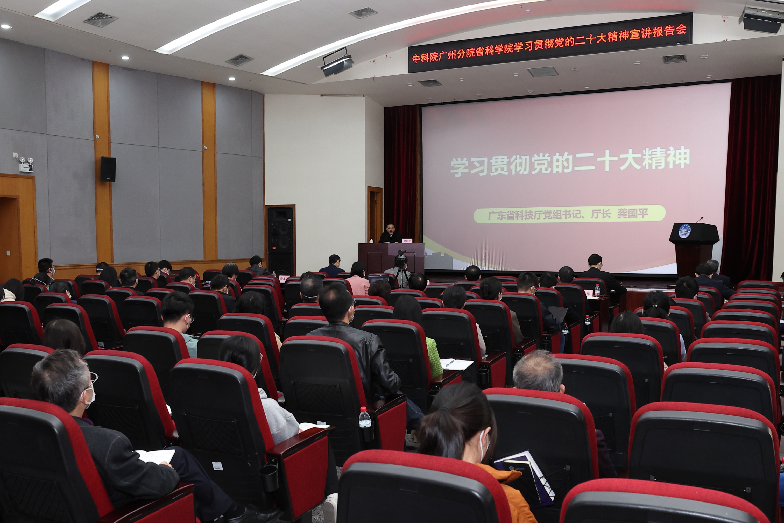 12月10日,“中國科學(xué)院廣州分院 廣東省科學(xué)院學(xué)習(xí)貫徹黨的二十大精神宣講報告會”在廣東省科技圖書館學(xué)術(shù)報告廳舉行。會議由中國科學(xué)院廣州分院、廣東省科學(xué)院聯(lián)合舉辦,邀請黨的二十大代表,廣東省委宣講團成員,廣東省科技廳黨組書記、廳長龔國平作宣講報告。廣州分院分黨組書記、院長陳廣浩出席會議并講話,省科學(xué)院黨委副書記、院長陳為民主持會議。