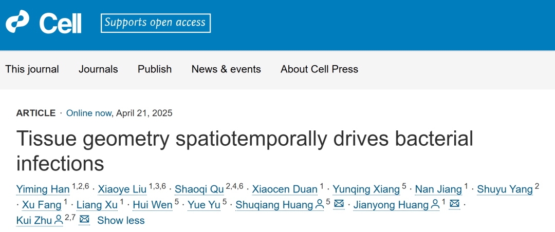 4月21日,中國(guó)科學(xué)院深圳先進(jìn)技術(shù)研究院定量合成生物學(xué)全國(guó)重點(diǎn)實(shí)驗(yàn)室研究員黃術(shù)強(qiáng)團(tuán)隊(duì)與中國(guó)農(nóng)業(yè)大學(xué)教授朱奎團(tuán)隊(duì)、北京大學(xué)研究員黃建永團(tuán)隊(duì)合作,在國(guó)際學(xué)術(shù)期刊《細(xì)胞》發(fā)表最新研究:團(tuán)隊(duì)通過(guò)跨學(xué)科協(xié)同創(chuàng)新,從“器官幾何結(jié)構(gòu)特征-細(xì)胞力信號(hào)轉(zhuǎn)導(dǎo)-病原菌感染”互作機(jī)制出發(fā),首次揭示組織形態(tài)特征調(diào)控細(xì)菌感染的新規(guī)律。同時(shí)團(tuán)隊(duì)提出了基于力敏感離子通道蛋白Piezo1的抗菌策略,為抗菌藥物提質(zhì)增效、降低毒副作用和指導(dǎo)合理用藥提供了潛在方案,具有重要的臨床應(yīng)用前景。